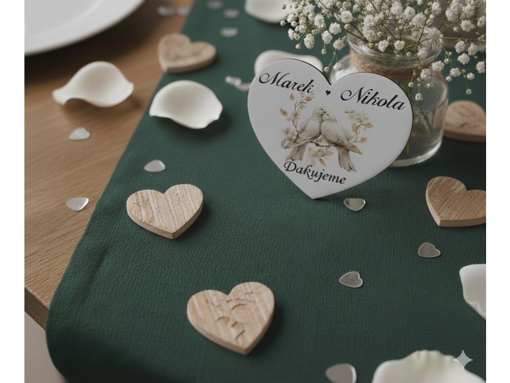 Text úplne na mieru: Radi pre vás pripravíme kombináciu vašich mien, dátumu svadby, alebo krátkeho poďakovania (napr. "Ďakujeme, že ste tu s nami!").